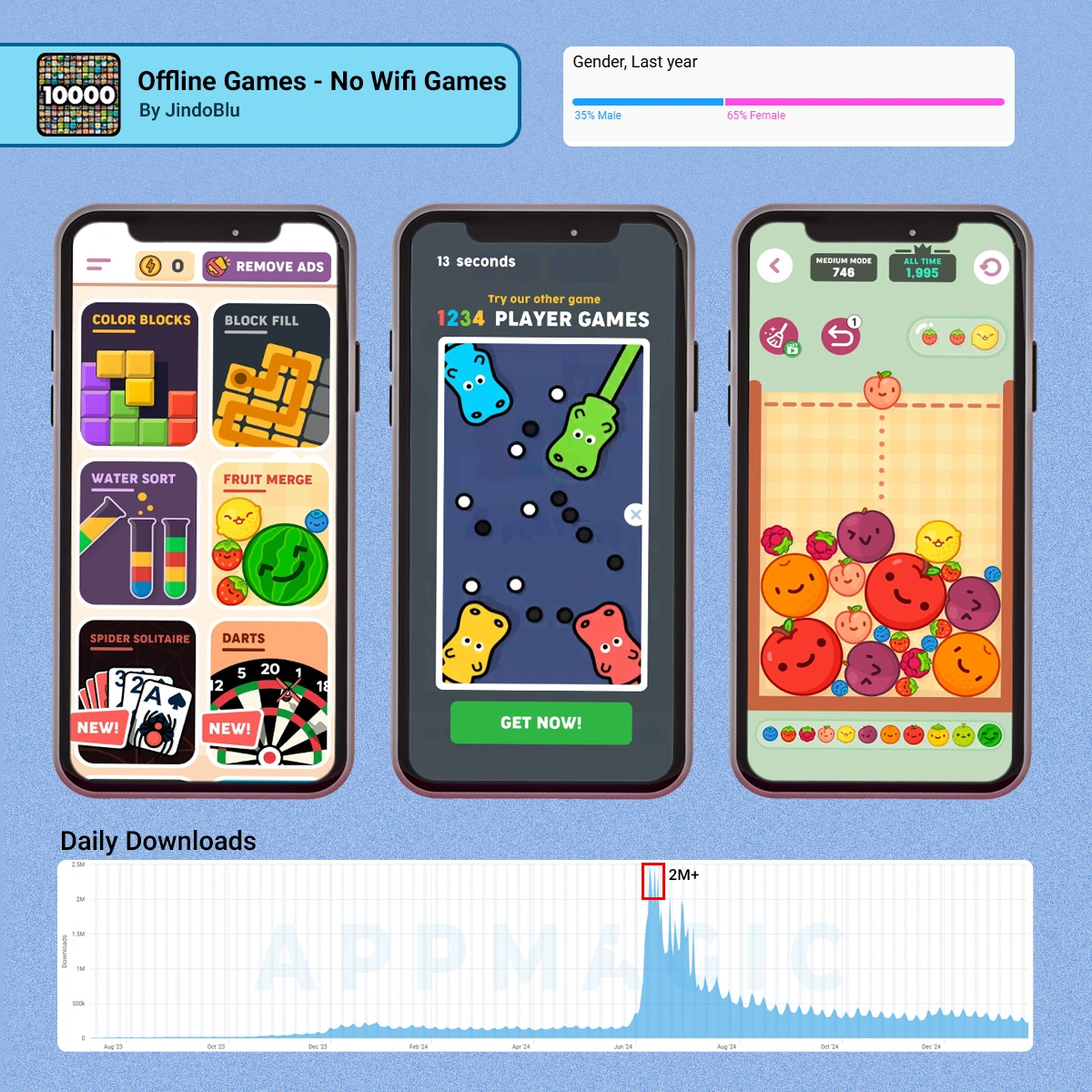 Offline Games – No Wifi Games is a game with a collection of games by JindoBlu released on August 4, 2023 and according to AppMagic it is still making 200K+ downloads per day.